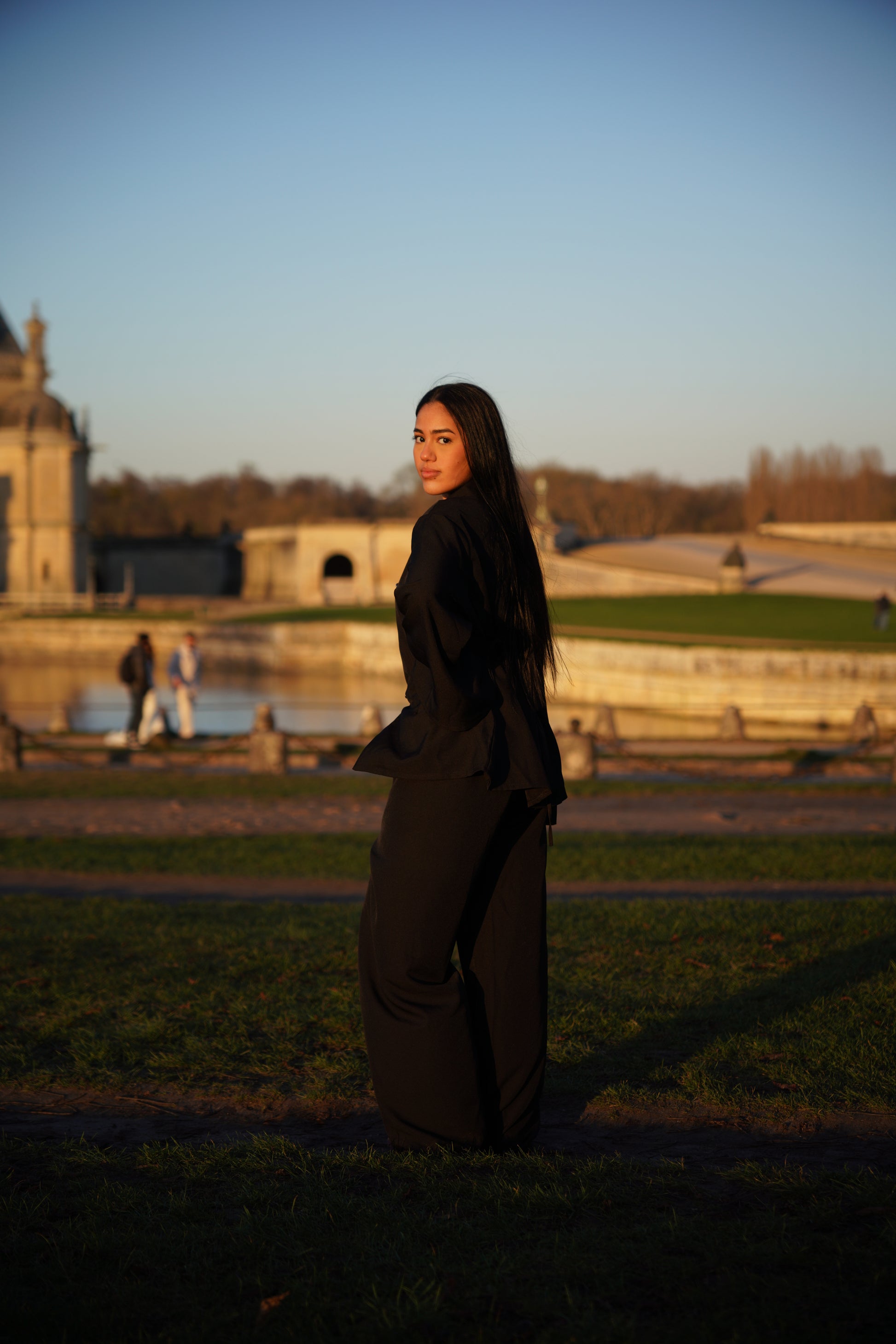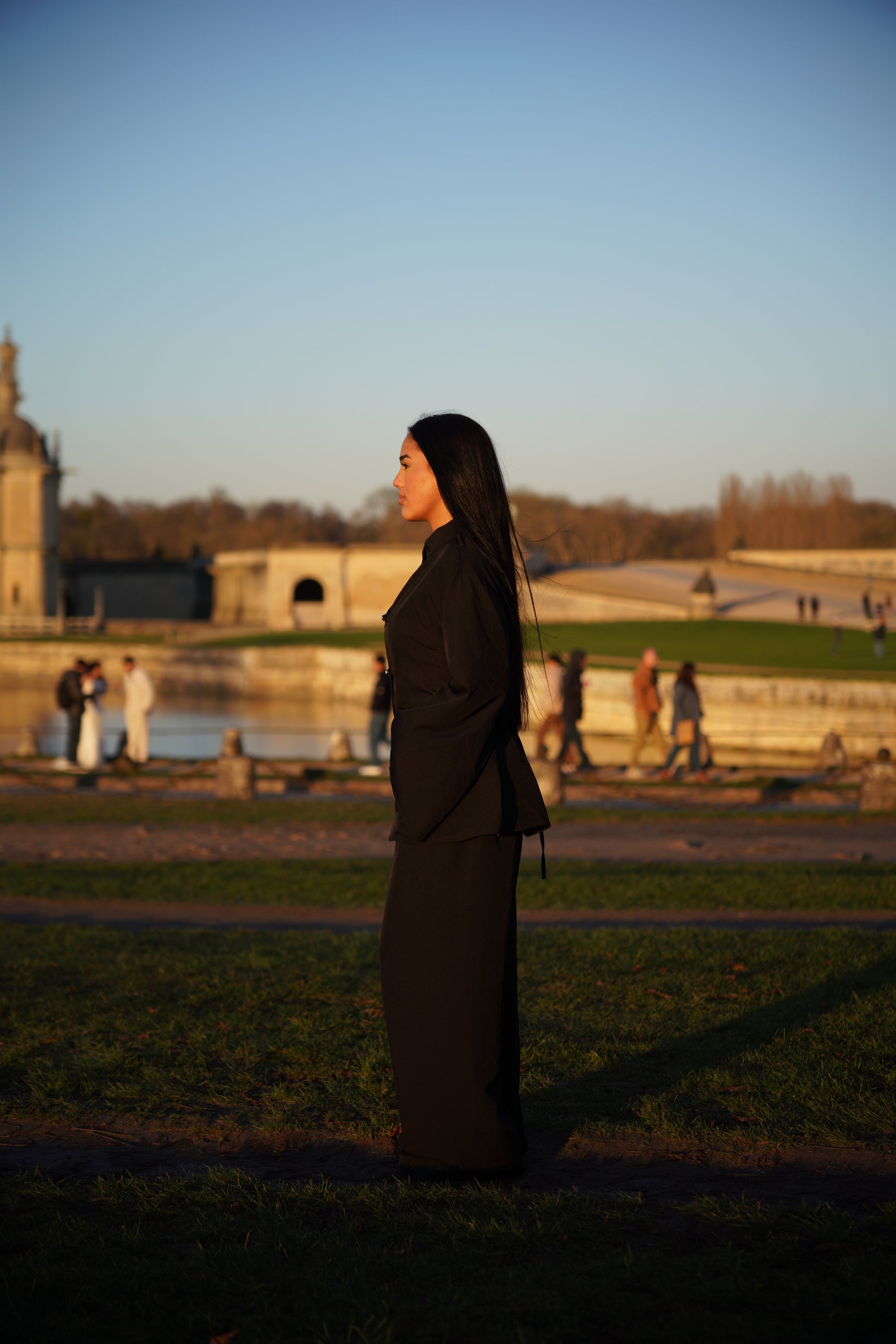 L'ensemble signature KN PARIS incarne une silhouette moderne et structurée.
